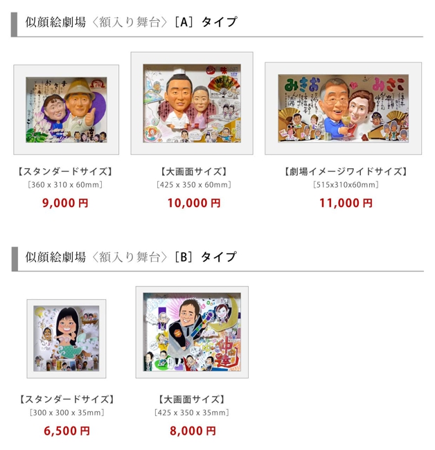 ![[A]タイプ用 ◉スタンダードサイズ [360 x 310 x 60mm]= 9000円 ◉大画面サイズ [425 x 350 x 60mm]= 10000円 ◉劇場イメージワイドサイズ[515x310x60mm]= 11000円 [B]タイプ用 ◉スタンダードサイズ [300 x 300 x 35mm]= 6500円 ◉大画面サイズ [425 x 350 x 35mm]= 8000円](../../_src/8332/gaku_size130116.jpg)